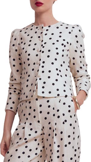 Romance meets polish in a print-forward linen jacket detailed with gently puffed sleeves and fabric-covered buttons. Cut slim to skim the natural waist and fully lined in breathable cotton, it also features functional pockets that are lightly tacked to keep the lines crisp,