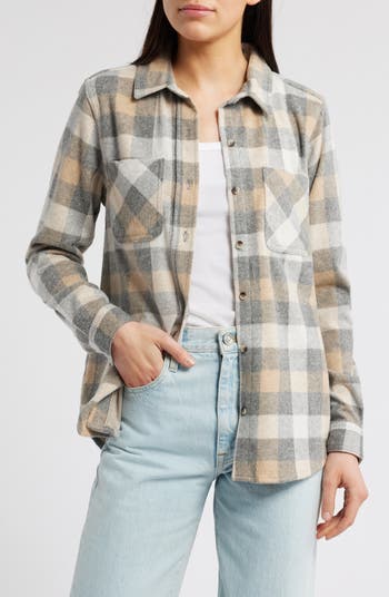 This cozy brushed shacket in a warm plaid print is the one you'll wear on repeat all season long.
