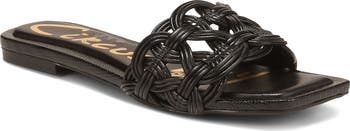 Sunny days were made for stepping out in this breezy woven slide sandal fronted with a trend-right square toe.