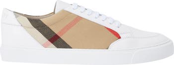 Checked cotton gabardine—which Thomas Burberry invented in 1879—brings heritage appeal to this leather low-top branded with raised logo letters at the heel.