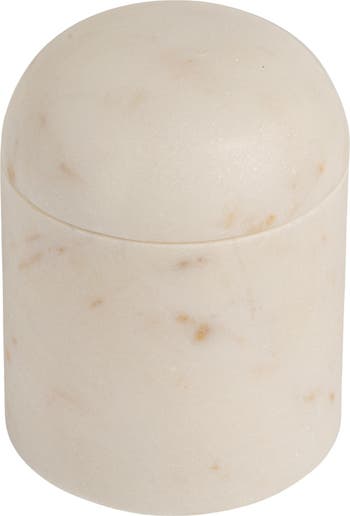 This Marble Salt Cellar, featuring a pristine white finish, is a perfect addition to Minimalist, Scandinavian, Farmhouse, and French Country interiors. Ideal for storing and serving salt, this round cellar combines functionality with timeless beauty, adding a touch of elegance to kitchen. Made of durable marble, it offers both durability and style, making it a versatile and stylish addition to the home decor. Measures 3 inches in diameter and 3.5 inches in height, this salt cellar is compact enough to fit on any countertop or dining table without taking up too much space. Its sleek design and neutral color make it easy to incorporate into any kitchen aesthetic, while the smooth surface is easy to clean and maintain for years to come.