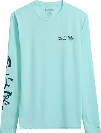 Dive into sun-soaked adventures with the Salt Life Men’s Liquid Depth Badge Long Sleeve SLX Performance Tee. Crafted from SLX Uvapor fabric, it delivers UV 50 sun protection, quick-dry technology, and antimicrobial performance, while a Liquid Depth Badge sublimation graphic adds effortless coastal style.
