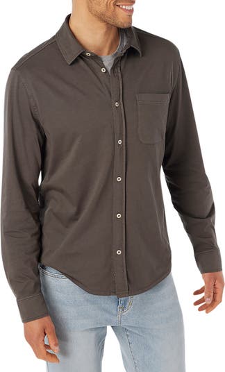 Organic-cotton knit with a sunwashed finish skips the years of wear and goes straight to the good part in this button-up that's as comfortable as your favorite crewneck but with a bit more polish.