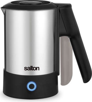 Never miss your cup of tea with this Compact Kettle! This kettle’s compact design has a foldable handle and a retractable power cord for easy storing and traveling. 1000 watts with a 600 ml capacity means water reaches boiling point in a matter of minutes. With a full stainless steel interior, concealed heating element and removable lid; the jug is easy to clean and fill. Access to hot water is too important to leave behind – take your kettle with you!