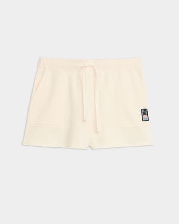 Soft where it counts and flattering by design, these women’s shorts fall perfectly with an elastic ribbed waistband and adjustable drawcord. Crafted from ocean-washed jersey fleece, they’re made for lounging, loving, and living in all day.