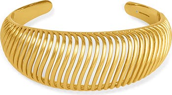 A cage silhouette creates an open sculptural looj in this statement-making cuff bracelet.