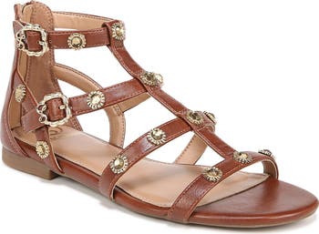 Gleaming studs trace across the caged straps of a breezy sandal secured with a slim ankle strap.
