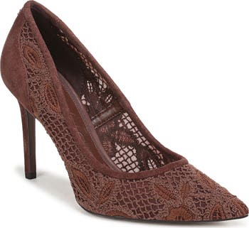 An embellished mesh upper brings modern elegance to a soirée-ready pump framed by a pointy toe and tapered heel.