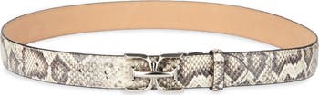 A polished logo buckle provides an eye-catching focal point for a slim belt that adds the perfect pop of personality to any look.