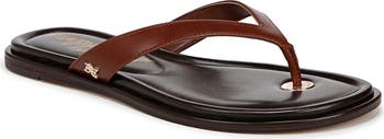Smooth leather straps add subtle refinement to a classic flip-flop that's a sunny day essential.