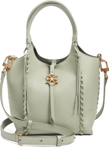 Tonal whipstitching and logo hardware add signature refinement to this richly grained leather handbag in a sized-down silhouette.