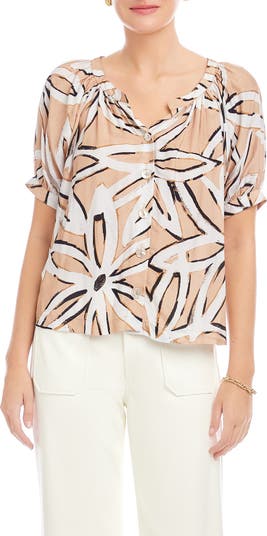 Printed in the brand's abstract Starflower print, this short-sleeve button-up top blends softness and structure with gentle gathers along the neckline and easy raglan sleeves.