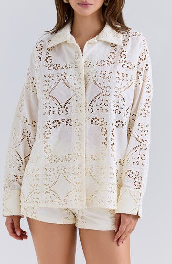 Structured from pure cotton, this lightweight shirt is made with airy broderie anglaise for a summery yet polished vibe.