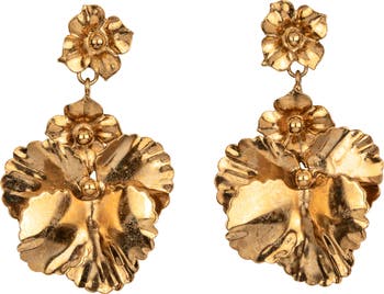 Blur the line between art and fashion with these sculptural floral drop earrings plated in high-polish 18-karat yellow gold.