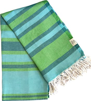 The bright stripes of the Samara Green owes its name to the breathtaking Costarrican beach. A combination of colors that transports you to that paradisiacal beach! This beautiful Turkish towel was Ethically crafted from recycled cotton according to the ancient tradition, made to last and bring joy! Wrap yourself in the most sustainable and ethical choice and #beachangemaker Enjoy the softness, versatility, and beautiful design of Samara Blue & Yellow Turkish Towel. It doesn't matter if you are a pool-lounger, a trendsetter, a beach or a picnic lover, a camper, or a yoga fan... The Samara Green will be your favorite companionship for all your adventures.