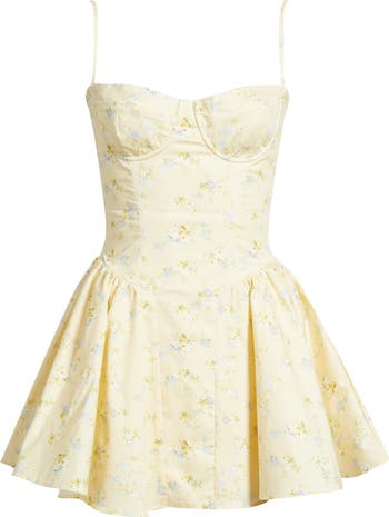 A boned bodice adds extra allure to a sweet-and-spicy mini cut from stretch-kissed cotton and hung from delicate straps.
