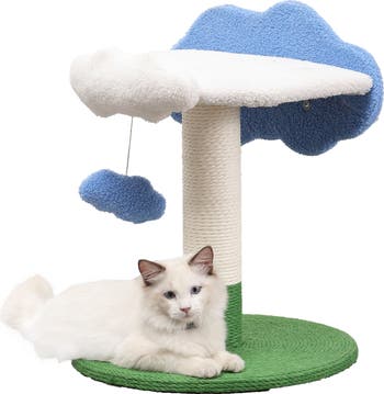 Our cloud cat tree not only looks cute, it helps keep your cats happy and healthy. The climbing platform is covered in plush fabric to resemble a sky and cloud, with a jute post for scratching and a dangling cloud toy. This small cat tree is perfect for a bedroom or small living room.
