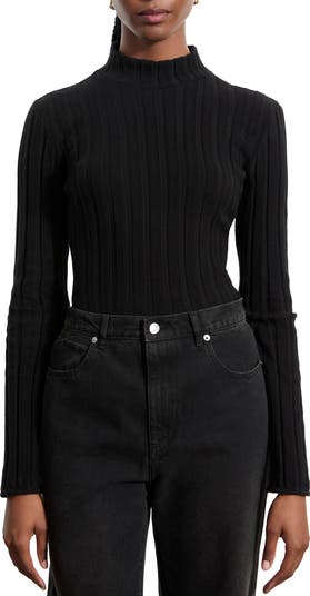 A cotton-enhanced rib lends dimension to this sleek mock-neck sweater that's brushed for softness.