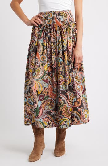 A boho pattern draws the eye to this staple A-line midi skirt made from supersoft cotton for a breezy fit even as the temp rises.