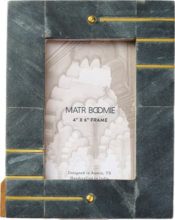 Our Sammita collection features clean lines and designs perfect for minimalists and boho enthusiasts that enjoy symmetrical patterns. This carved marble frame in black features gold tone brass inlay, all handcrafted by artisan makers in India. The weight of the marble gives this frame a luxury feel and would make a great gift for him or gift for her and fit into various different styles in the home.