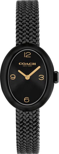 A stunning oval dial marked with four numeral indexes brings a clean, minimalist aesthetic to a poised timepiece set on a slender mesh strap.