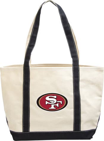 Pack all the essential items you need for the day in this San Francisco 49ers tote bag. Made from durable canvas fabric, its contrasting trim and straps make the San Francisco 49ers logo more noticeable. There's plenty of room in the open compartment to store small stuff, and long handles provide a comfortable carrying position.