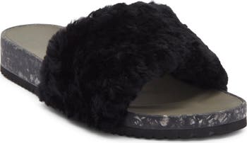 A soft shearling strap pairs with a leather insole with natural markings for a lived-in look on this chic and comfy slide sandal.The FLEKSfoam™ midsole offers cushioned support with up to 85% recycled content, so you can feel good while taking it easy.