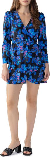 Fall for the figure-skimming silhouette of this faux-wrap dress covered in vivid blooms.