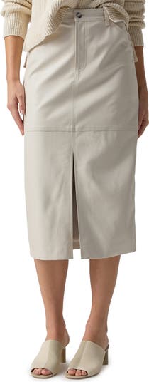 A versatile skirt styled with seamed detail, a front-slit hem and handy pockets complements both casual and dressier looks.