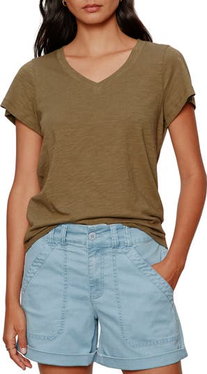 This relaxed T-shirt is ready to be put in the favorites pile with a soft, slubbed cotton blend and fluttered sleeves.