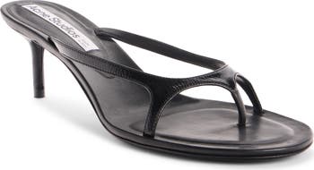 Crafted from crinkled patent leather in a barely there silhouette, this delicate thong sandal is balanced on a dainty kitten heel.