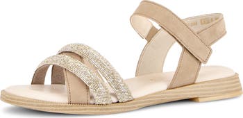Crisscrossing leather straps with tonal beading elevate the look of this sporty-chic sandal featuring a comfortable, lightweight design.
