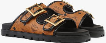 Visetos monogram canvas sandals with Italian calfskin leather trim and Bavarian diamond metal buckle hardware
