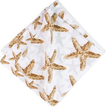 The Sandbridge Stars table linen collection brings the magic and romance of the sea to any kitchen. The simply stylish coastal starfish print of this reversible cotton napkin creates a relaxing beach vacation feel.