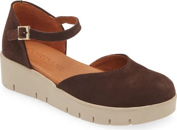 Plush padding and a walkable platform offer lasting comfort in this d'Orsay pump crafted of velvety suede and secured with a slim ankle strap.