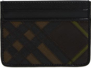 The iconic Burberry Check gets reimagined as a buffalo-leather patchwork in this compact card case designed with a center slip pocket for extra storage.