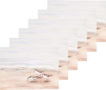 Sandpiper Coastal Shores Graphic Print 100% Cotton Set of 6 Placemats 14" x 20"