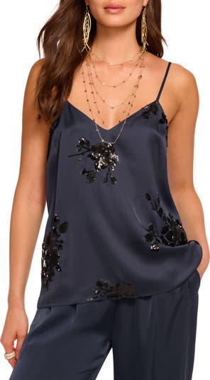 Whether worn as a first layer or a solo player, this draped cami with sequin embellishments makes your look shine.