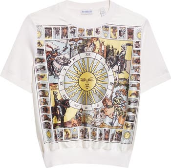 Burberry draws off traditional tarot imagery to create this short-sleeve sweater that's printed with esoteric designs inspired by British artist Pamela Colman Smith.