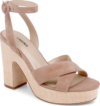 A chunky platform and lofty block heel elevate a supple suede sandal featuring a foam-cushioned footbed and adjustable ankle strap for comfortable wear.