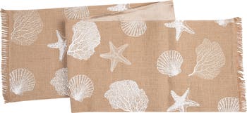 Sandy Coast Cotton Table Runner 14" x 72" - Nautical Coral & Starfish