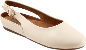 Slip into total comfort in this leather slingback flat boasting a soft microfiber footbed with ample arch support for heavenly stepping.