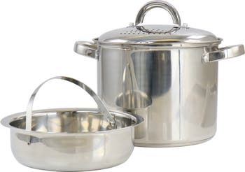 Sangerfield 5 Quart Stainless Steel Pasta Pot with Strainer Lid and Steamer Basket