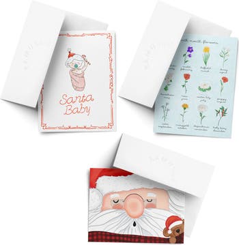 Santa Baby, Birth Month Flower, Santa's Nap Winter/Holiday/Christmas Greeting Card Pack Sets