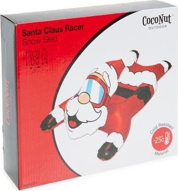 Bring joy to wintry days by racing down snowy slopes on a darling Santa Claus tube racer designed with built-in grip handles for safety and control.