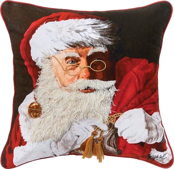 Santa Claus With Toys Printed and Embroidered Christmas Throw Pillow, 18" x 18"