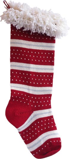 This stocking features a classic red and ivory striped design, beautifully accented with small ivory stitch details that resemble tiny snowflakes. The standout feature is the plush, fluffy ivory cuff, reminiscent of Santa’s coat cuffs, adding a luxurious and whimsical flair to the stocking. Perfect for hanging by the fireplace, this stocking is as functional as it is decorative, offering plenty of room for treats, small gifts, and holiday surprises. The durable cotton weave ensures that this stocking will become a cherished part of your holiday traditions for years to come.