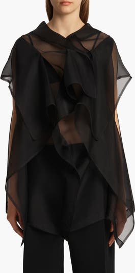 Featured in the opening look of the label's SS25 runway, this sculptural top is crafted from layered squares of inky silk organza that cascade around your body. Sheer and voluminous, it has a dark romanticism that gives it a polished edginess.