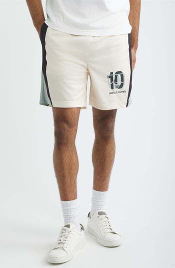 Inspired by the pitch and perfect for everyday, these soccer shorts cut from lightweight mesh feature stripes and colorblocking on the legs to kick up the sporty look. They cinch above the hips and hit mid-thigh with a fit that works for athletic activities and casual afternoons alike.