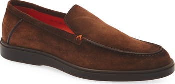 Crafted from supple calfskin suede, this minimalist loafer features moc-toe seaming with a signature orange stitch and a supportive rubber sole for modern comfort. Wear it to elevate a favorite casual outfit or subtly relax a semiformal one.